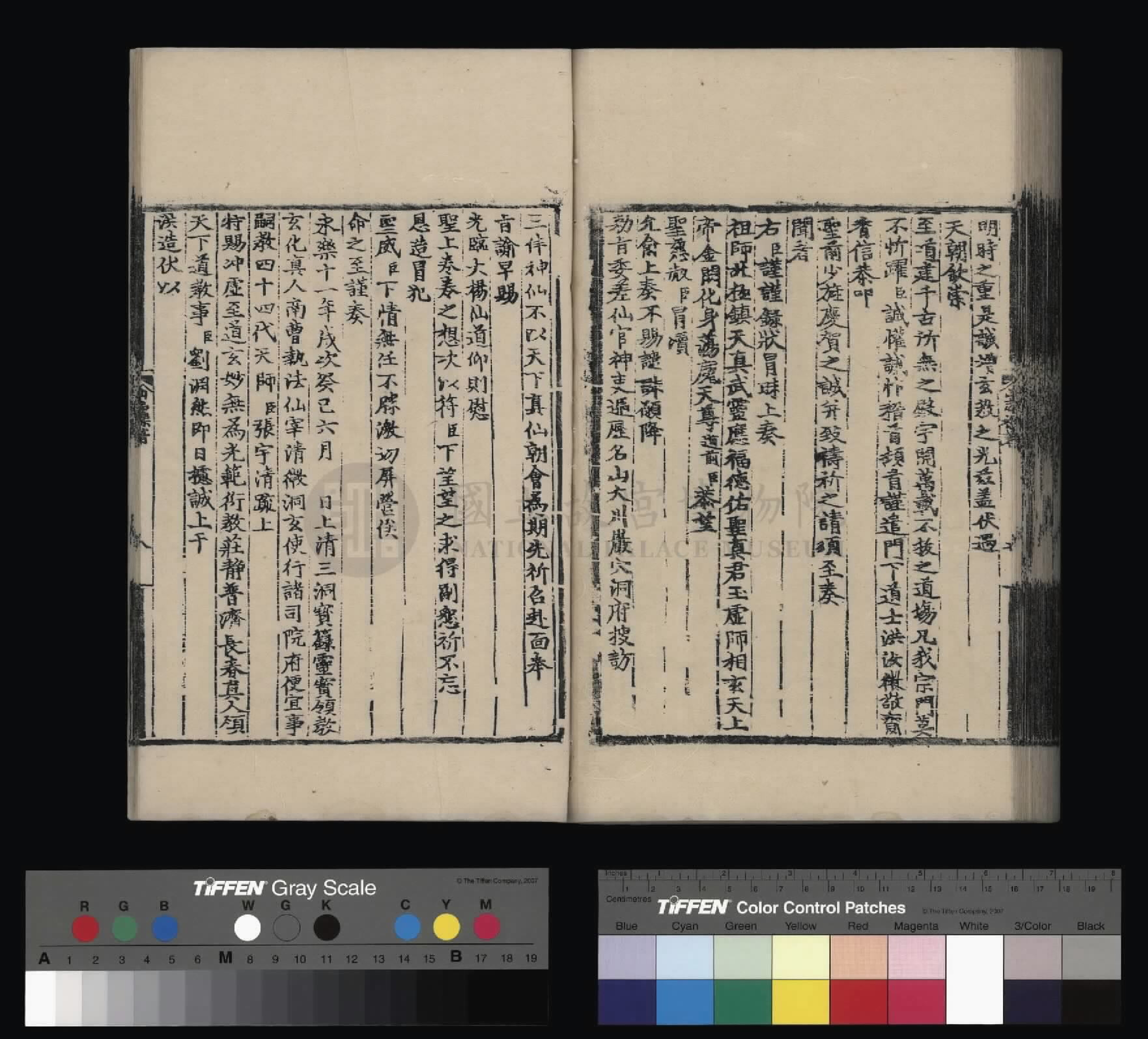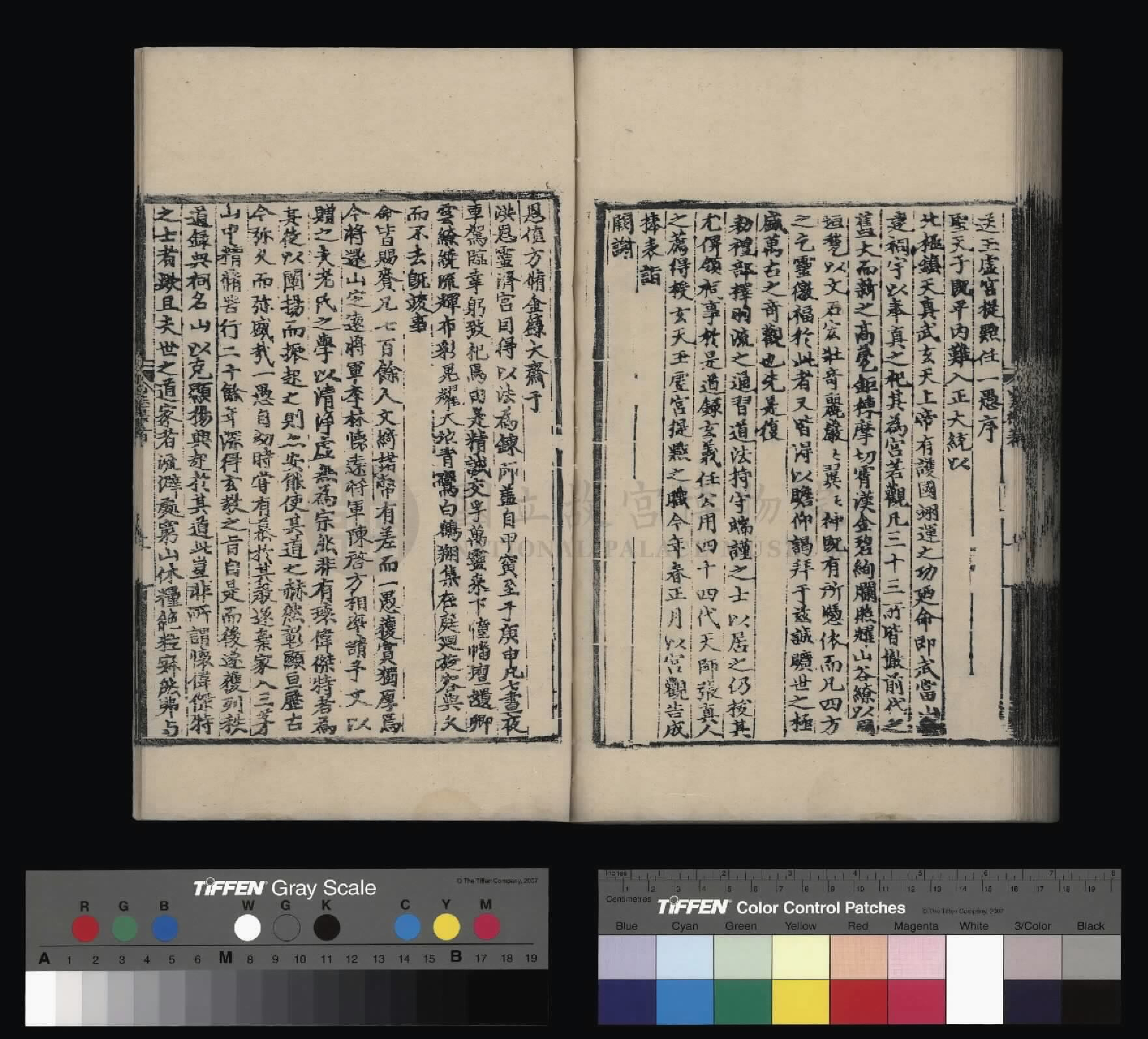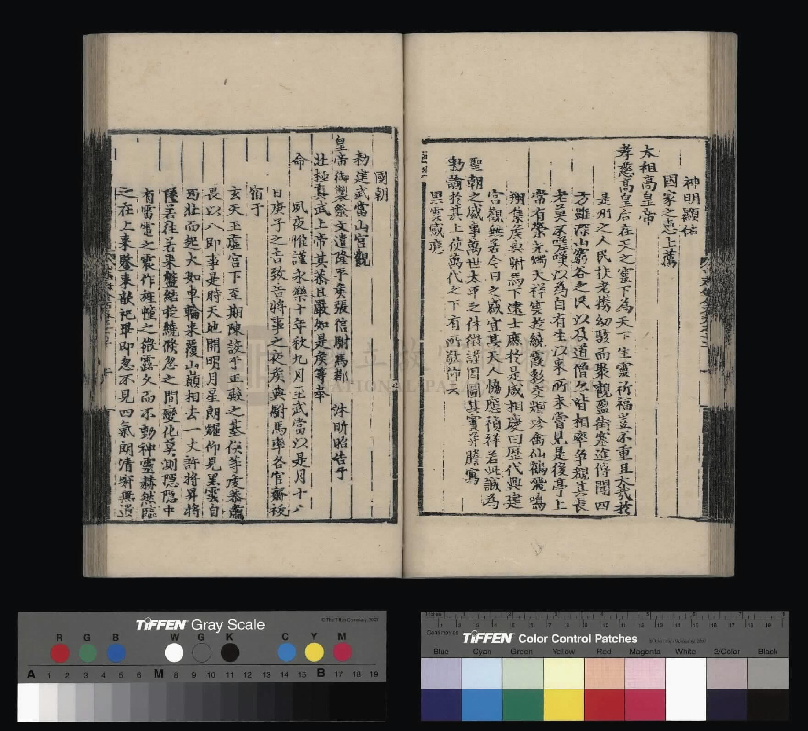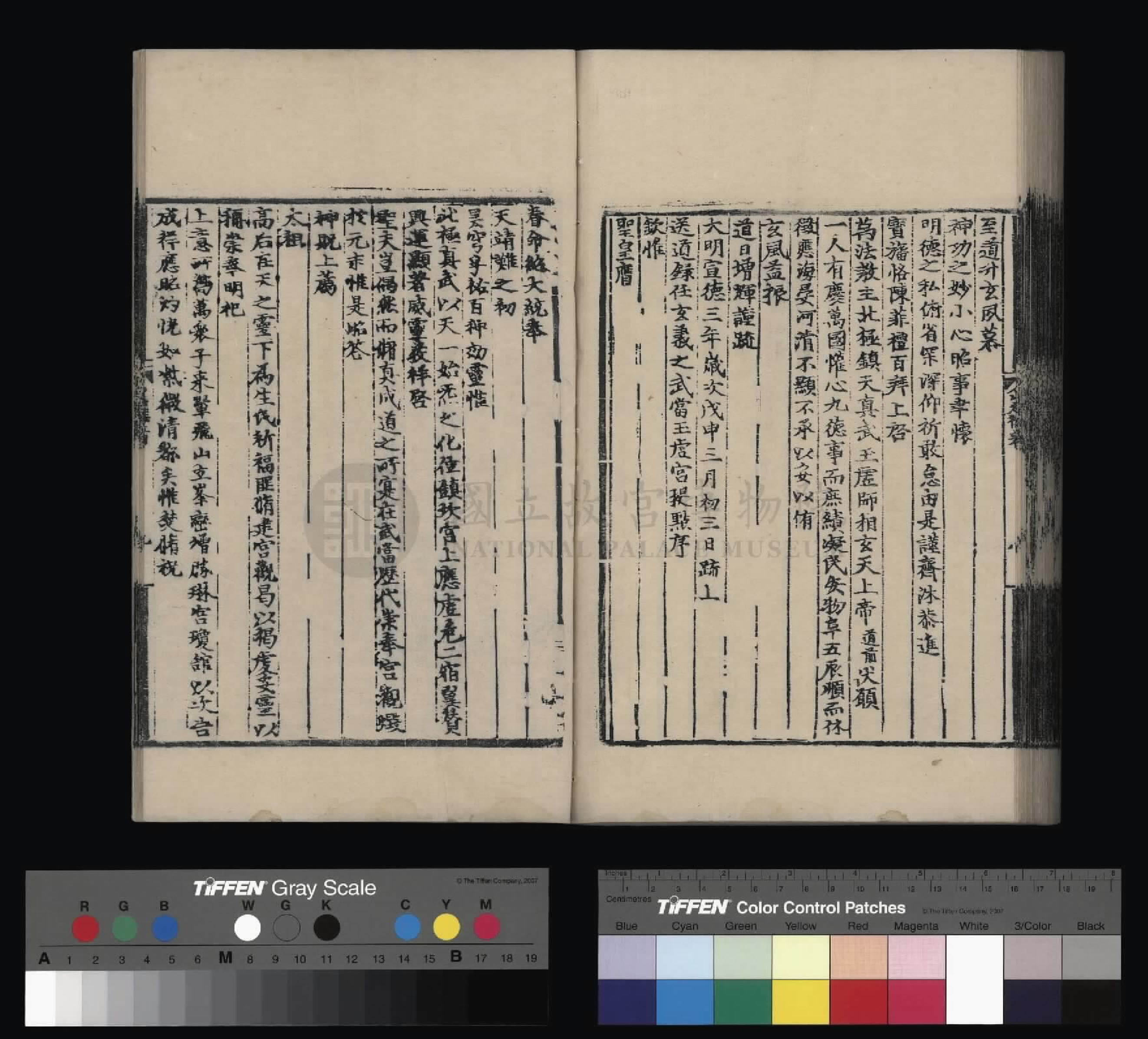 钦惟皇帝陛下,圣猷天纵,渊德日跻,席崑山之盛,德量昭恩于海宇;承圣神之运,重华协美于成、康,临御之功,烈远超于文、景。肆类以尊上帝,禋遍以及百神,上以资荐皇祖列圣在天之灵,下为四海苍黎祈迓无穷之福,作兴玄教,用答神明。