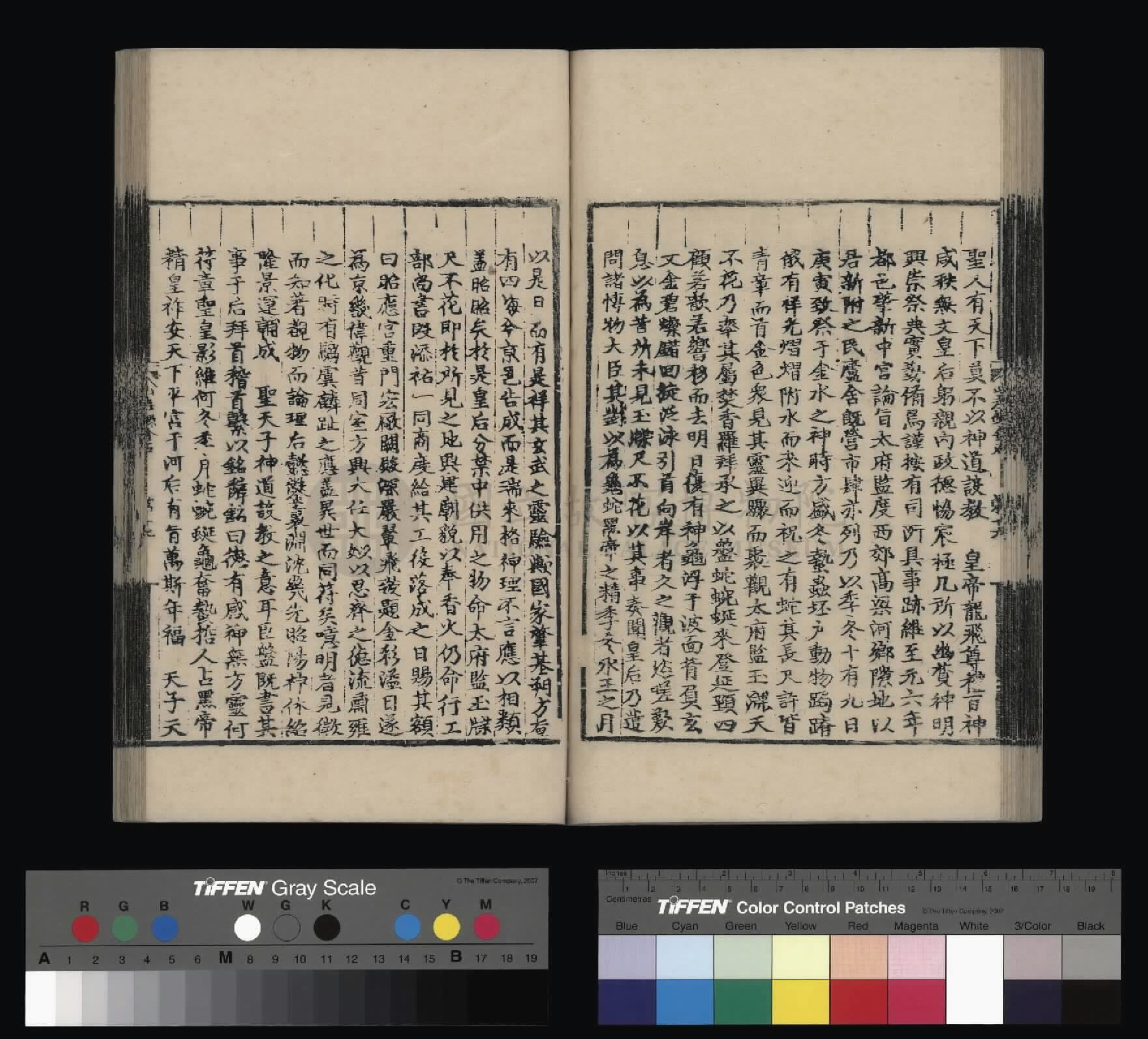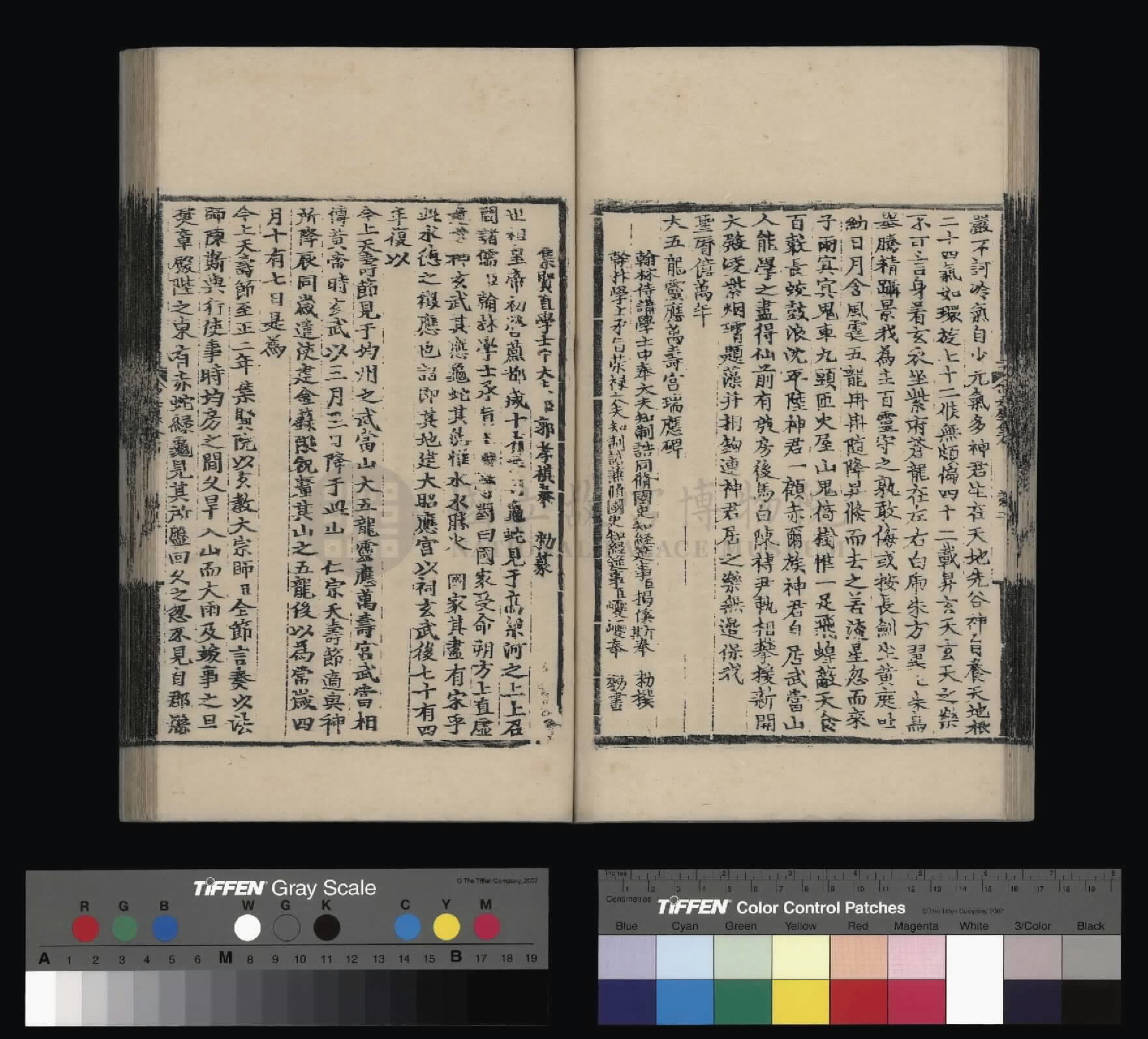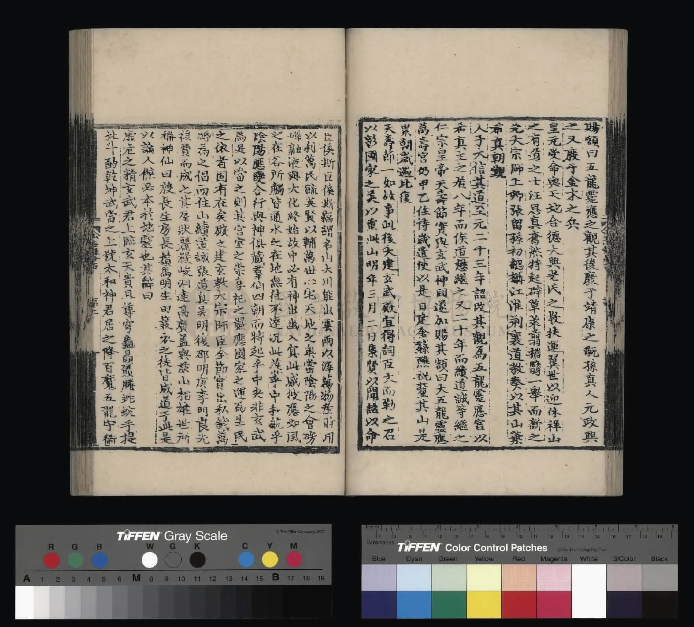 钦惟皇帝陛下,圣猷天纵,渊德日跻,席崑山之盛,德量昭恩于海宇;承圣神之运,重华协美于成、康,临御之功,烈远超于文、景。肆类以尊上帝,禋遍以及百神,上以资荐皇祖列圣在天之灵,下为四海苍黎祈迓无穷之福,作兴玄教,用答神明。