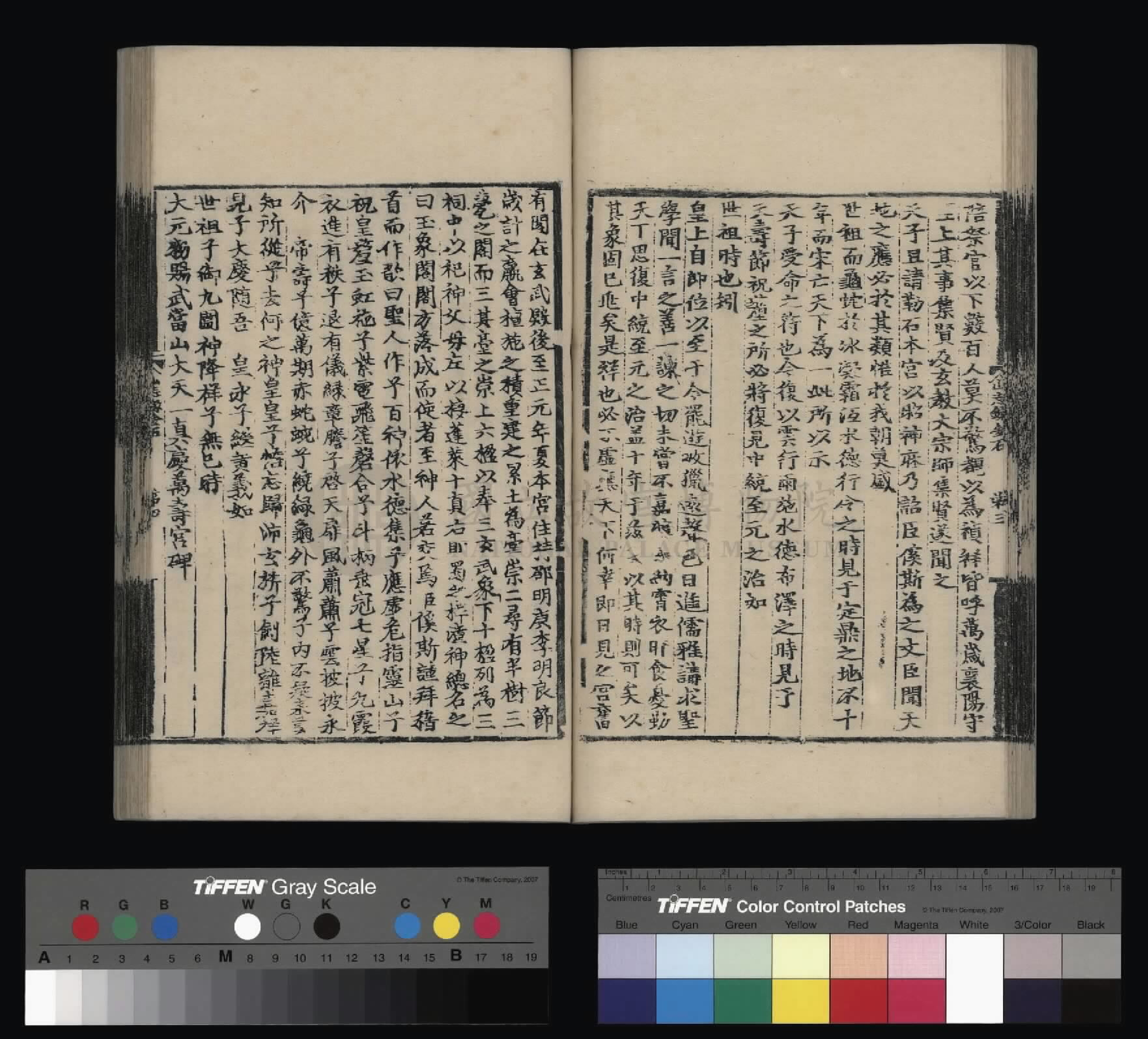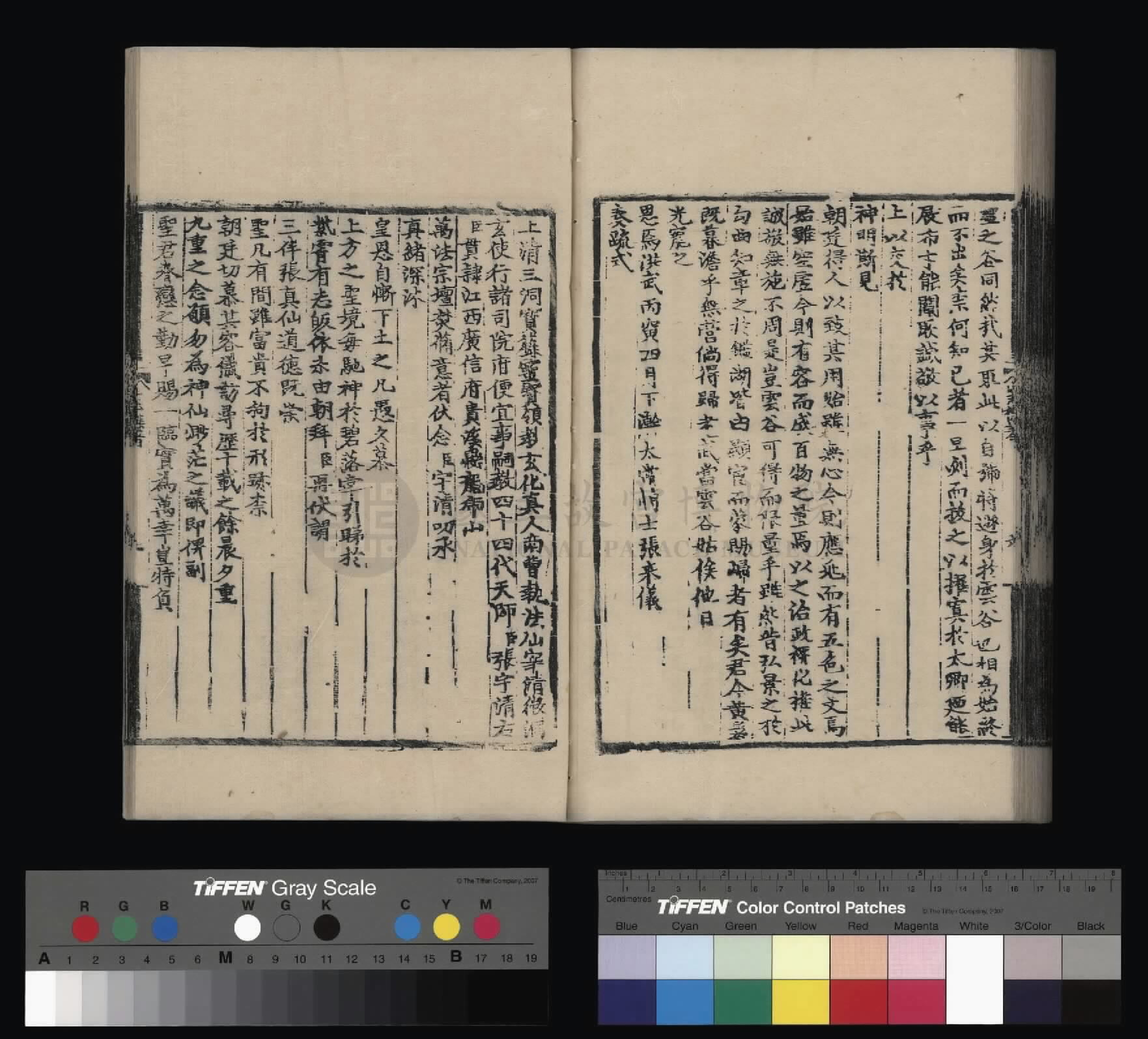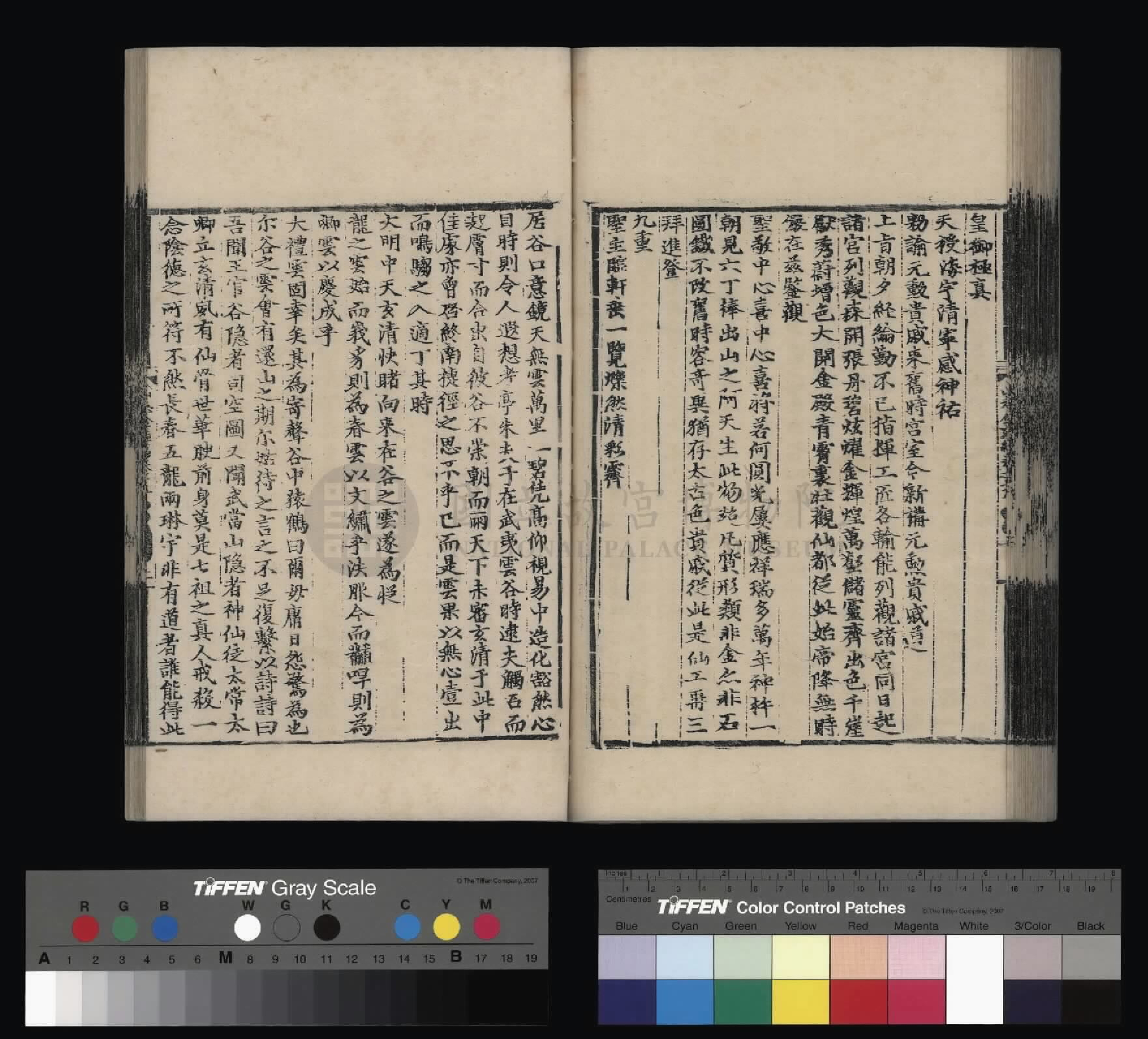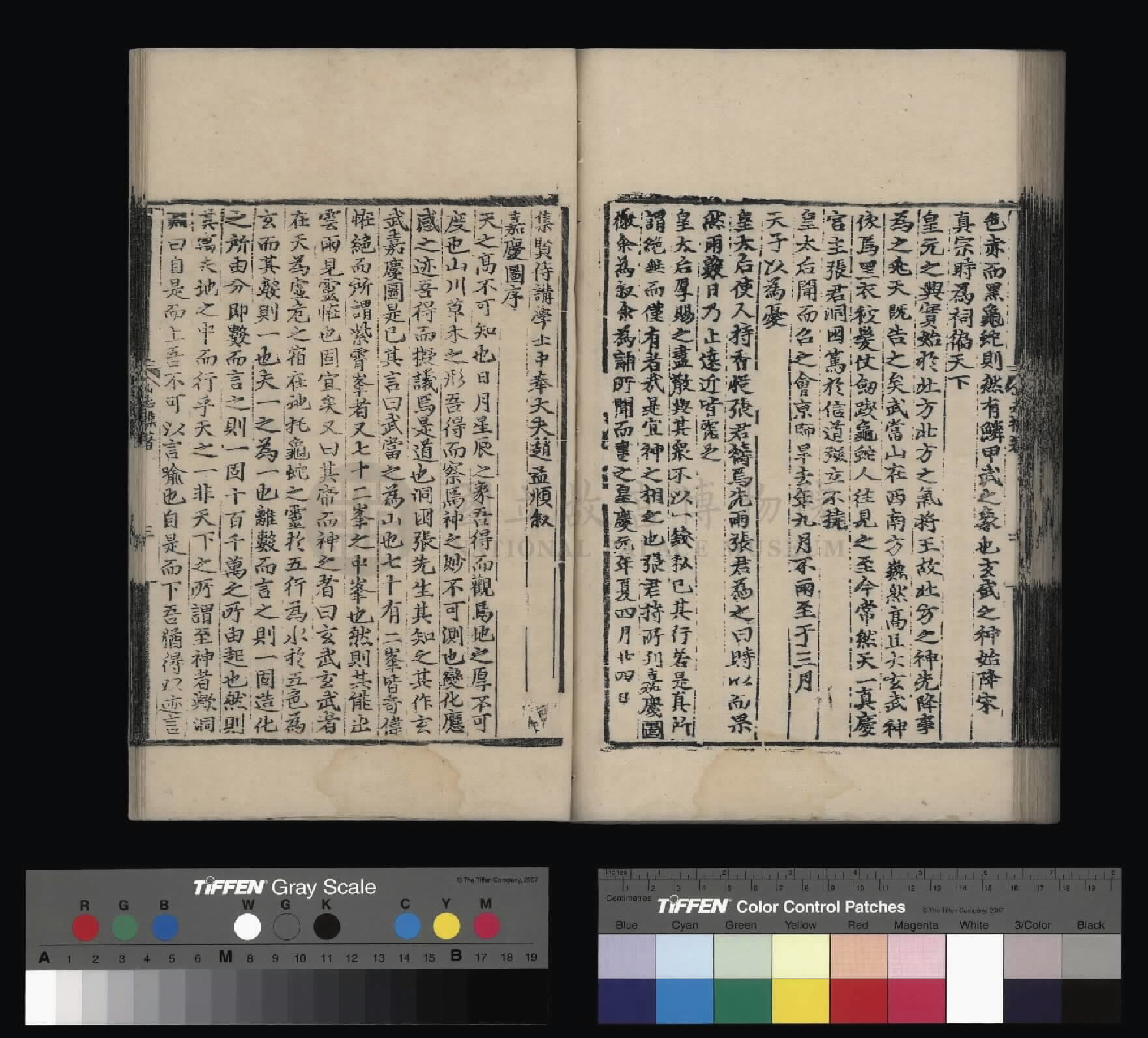 钦惟皇帝陛下,圣猷天纵,渊德日跻,席崑山之盛,德量昭恩于海宇;承圣神之运,重华协美于成、康,临御之功,烈远超于文、景。肆类以尊上帝,禋遍以及百神,上以资荐皇祖列圣在天之灵,下为四海苍黎祈迓无穷之福,作兴玄教,用答神明。