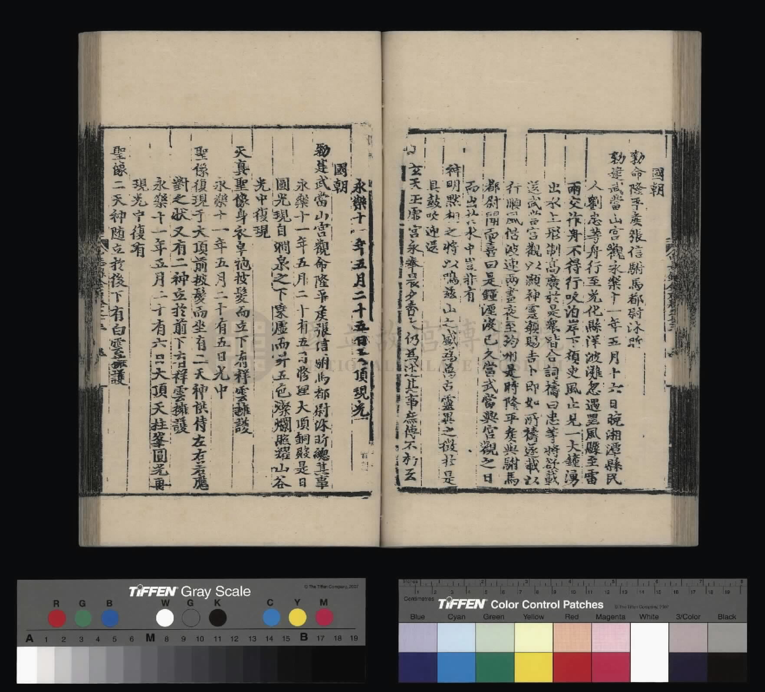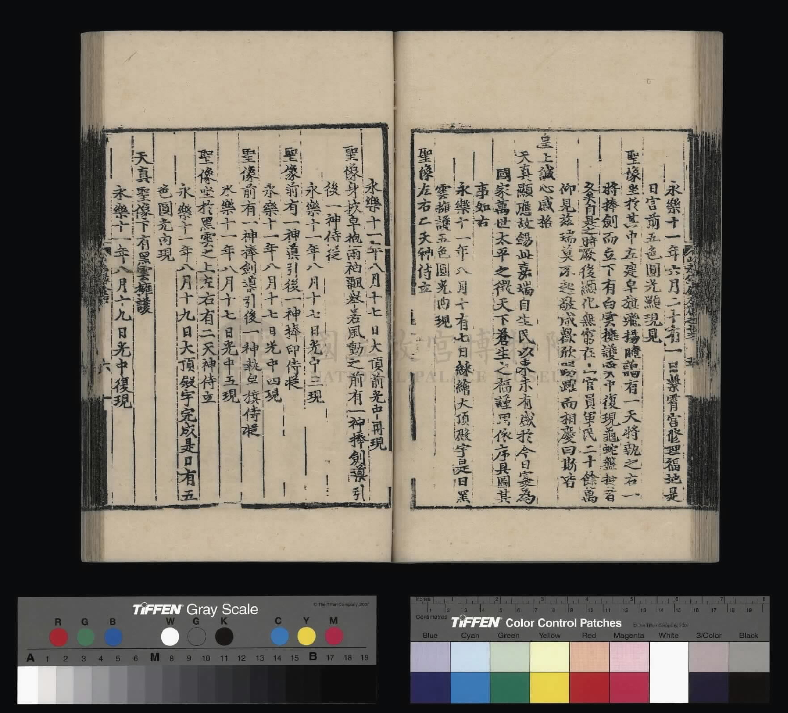 仁宗昭皇帝,缨志达孝,述事守成。至治感于神明,风调雨顺;恩德浃于寰宇,海晏河清。大一统皇明之治,为万年太平之征,皆由列圣之诚孚,是以天真之显应。圆光现瑞,榔梅呈祥。