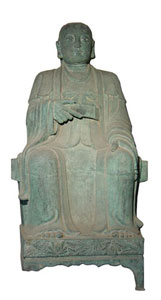 真武大帝,由古代星象学中“玄武”衍进而来的道教尊神。西汉时就有龟蛇相缠绕的形象;东汉开始人格化演进过程,最后形成披发跣足脚履龟蛇形象,并逐步演变为道教神灵中的大神。公元十世纪末,宋真宗改玄武为真武,沿袭至今。元成宗加封为“玄天元圣仁威上帝”。明太祖厘定真武神号为“武当真武之神”。明成祖封为“北极镇天真武玄天上帝”。清代加封为“北极镇天真武祖师,万法教主,元天元圣仁威上帝,金阙化身,荡魔天尊”等等。